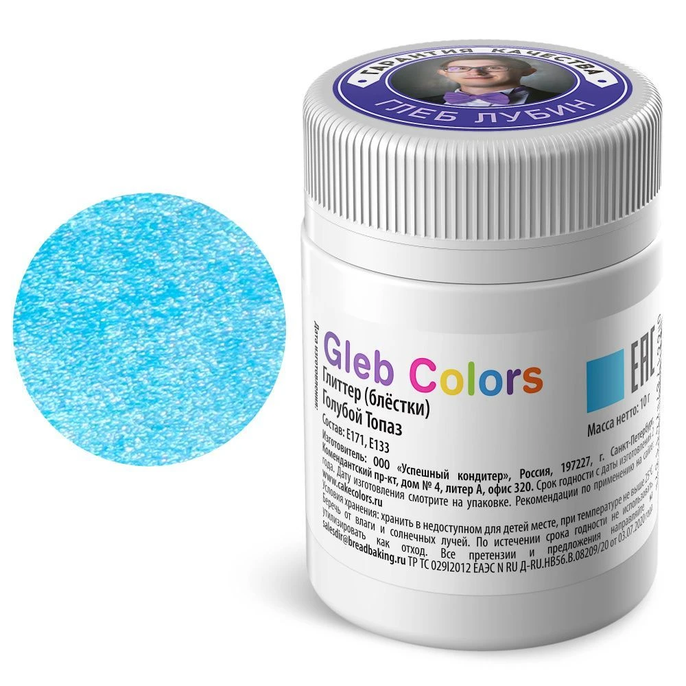 Глиттер пищевой Голубой Топаз, 10г (блёстки) Gleb Colors